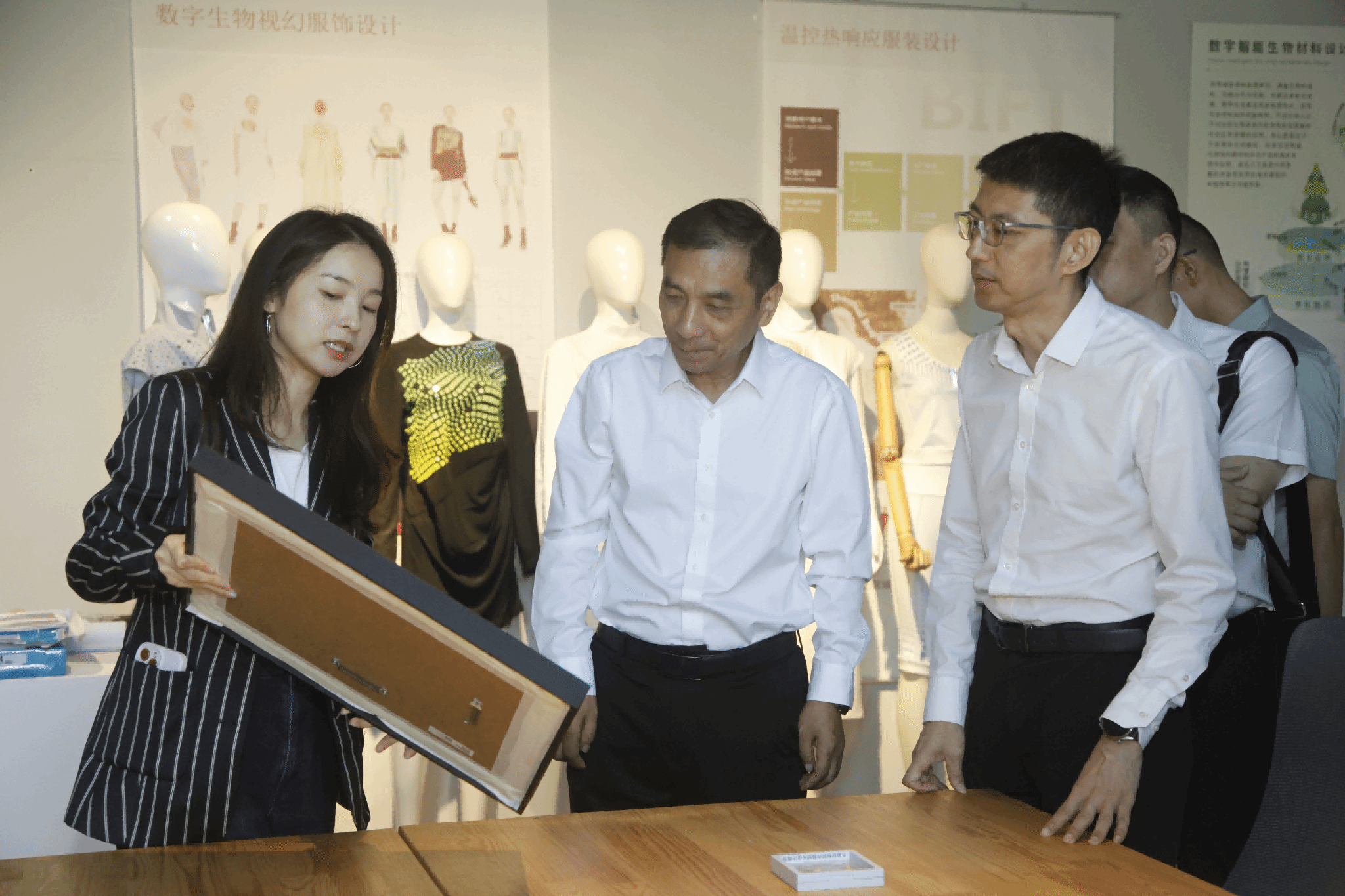 9月18日,调研团队奔赴北京服装学院,开启第二站调研。北京服装学院校长贾荣林亲自接待,副校长邹毅及相关部门负责人陪同座谈交流。在贾荣林校长的介绍下,双方围绕本科教育与职业教育的共同点及差异性,在专业建设模式、人才培养体系优化、产教融合机制完善等议题展开深入交流,尤其在同一行业背景下,如何规划未来服务产业发展的实施路径、对接龙头企业深化校企合作共同育人、充分利用科研平台提升科研服务能力与成果转化效率、国际化办学中优质教学资源引进与研究标准输出等方面,分享经验、交换意见,达成诸多共识。此外,孙锐校长一行还参观了北京服装学院的服装博物馆、交叉前沿研究院及 “为人民而设计”展,直观感受该校在学科建设、科研创新与文化传承方面的特色与优势。
